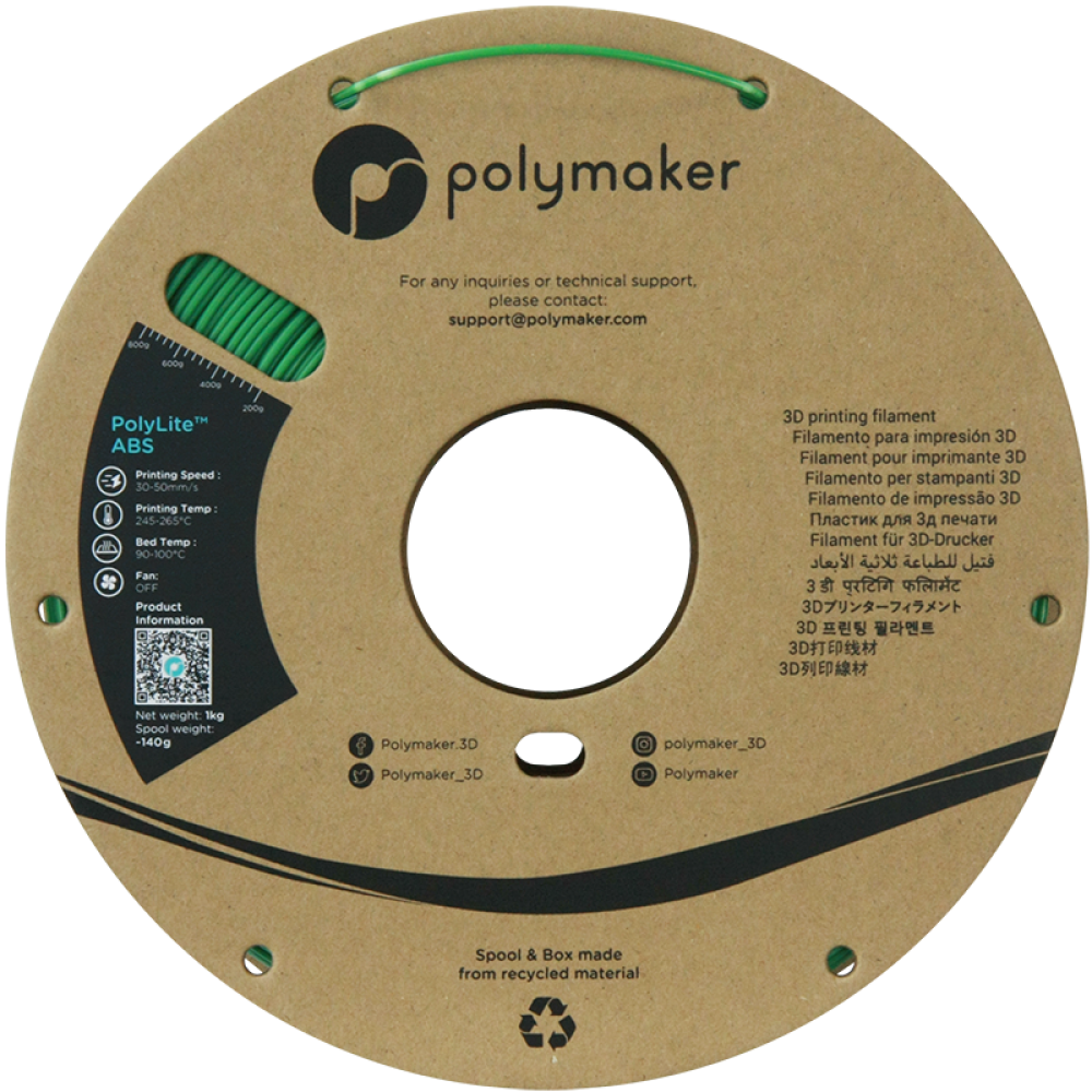 💪 High Heat Resistance and Durability: PolyLite ABS filaments are able to withstand high temperatures up to 104°C, making them suitable for engineering and functional use parts. Printed models feature high tensile strength and good dimensional stability.