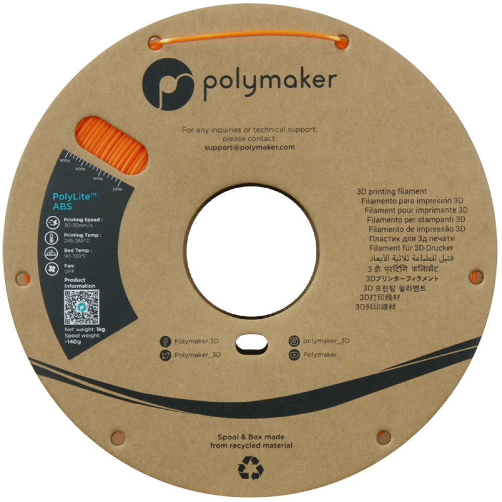 💪 High Heat Resistance and Durability: PolyLite ABS filaments are able to withstand high temperatures up to 104°C, making them suitable for engineering and functional use parts. Printed models feature high tensile strength and good dimensional stability.